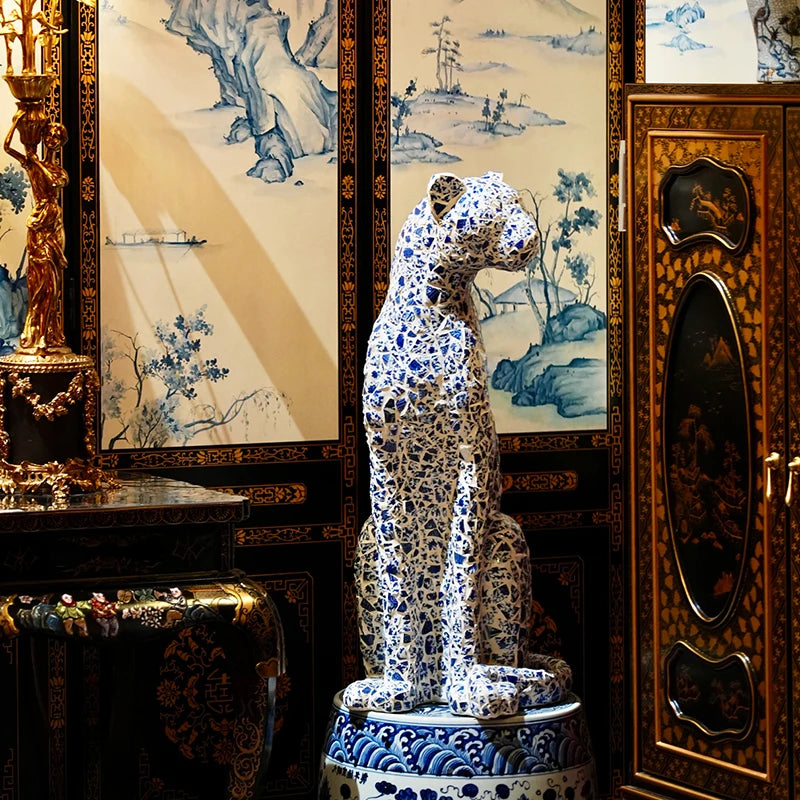 【Excellent】The fashionable shape Leopard statue floor decoration is especially suitable for household scenes such as porch, study, TV cabinet and bedroom, so as to improve the grade of the family in an instant