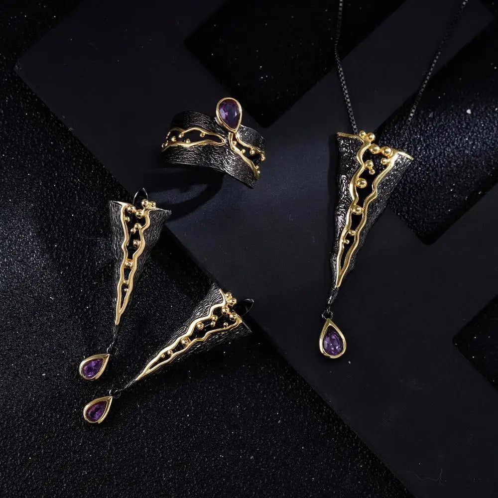 Main Stone:Adorned with a 3*5mm natural amethyst, these