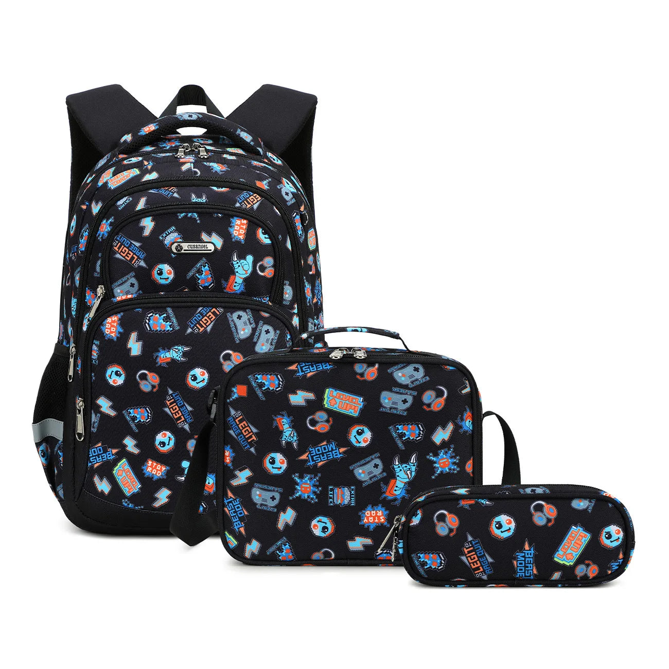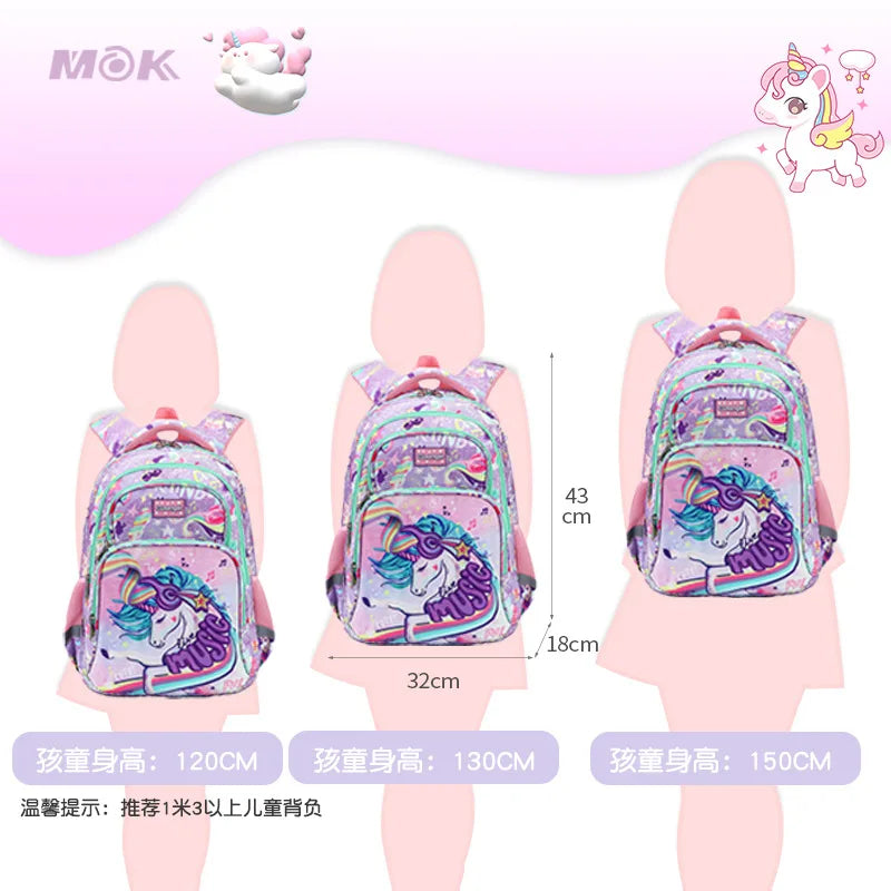 【Large capicity】: Backpack--16 * 12 * 7 inches , Lunch bag 9 * 9 * 4.5 inches, Pencil case 9*5 inches. Adequate capacity but lightwight itself. It's absolutely a super cute and meaningful gift especially for 5-10 years old children.