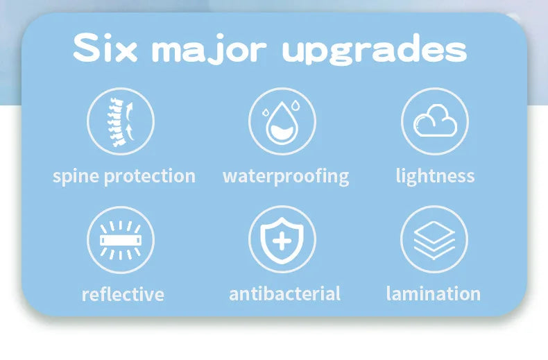 【Spine Protection】Backpack“S”shaped strap design, scientific weight-loss design. Breathable air cushioned back, Comfortable for the shoulders and back. Safe non-slip chest buckle shares the pressure on the back and shoulders.