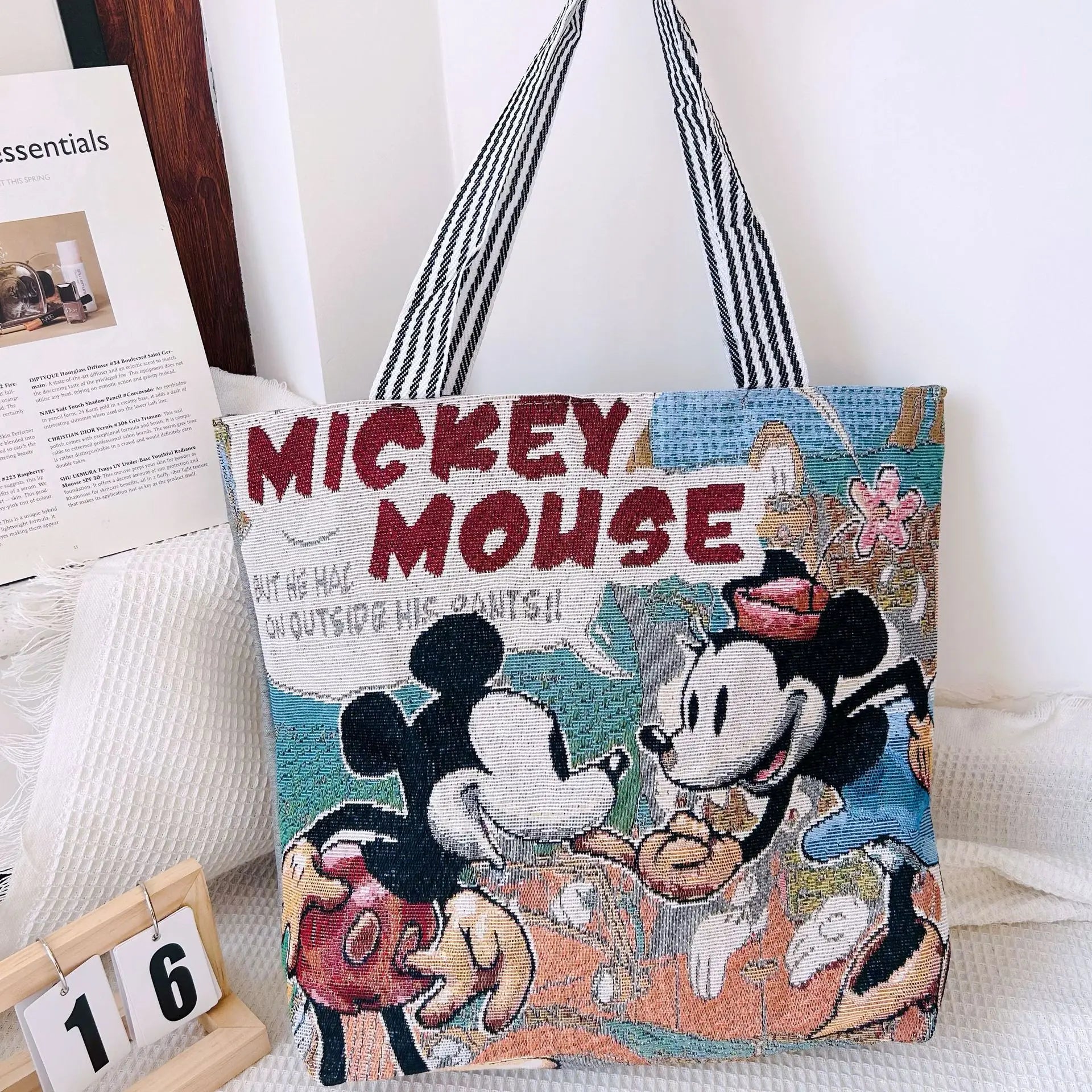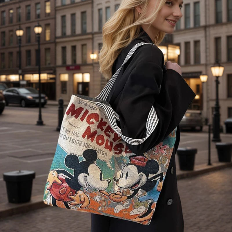 This bag is made of high-quality materials and features a large-capacity design to meet the needs of carrying items for daily travel. The bag features a fashionable and versatile embroidery design with Disney elements.