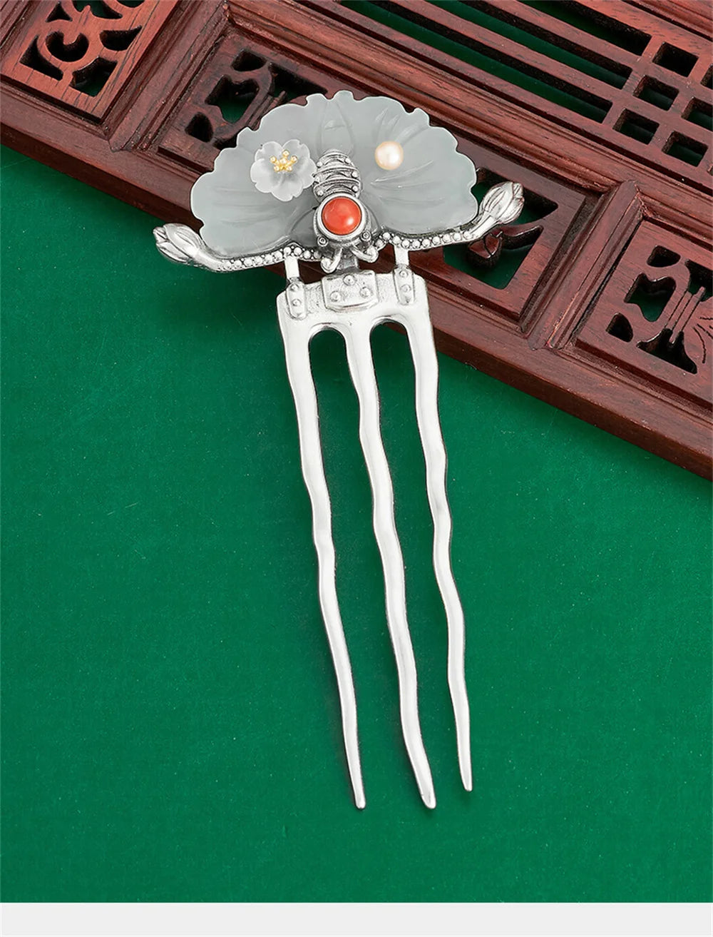 Jade Flower (S925 Sterling) Hair Stick Comb